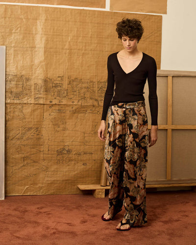 Pantalón palazzo marrón de cuadros