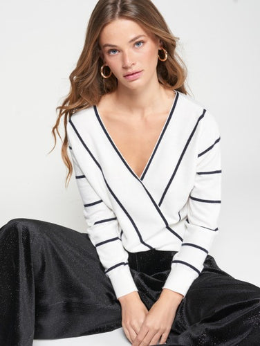 • PUNTO FABIOLA SEQUINS STRIPES ECRU BLACK