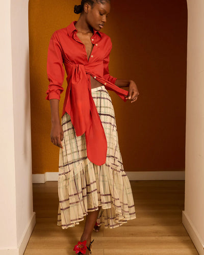 Falda midi de tul marfil