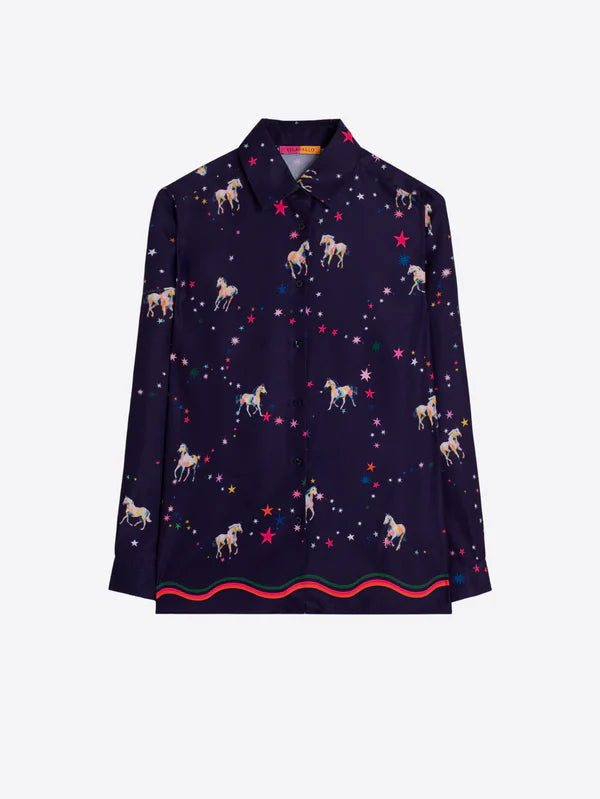 CAMISA AZUL MARINO ESTAMPADO CABALLOS Y ESTRELLAS