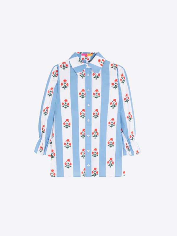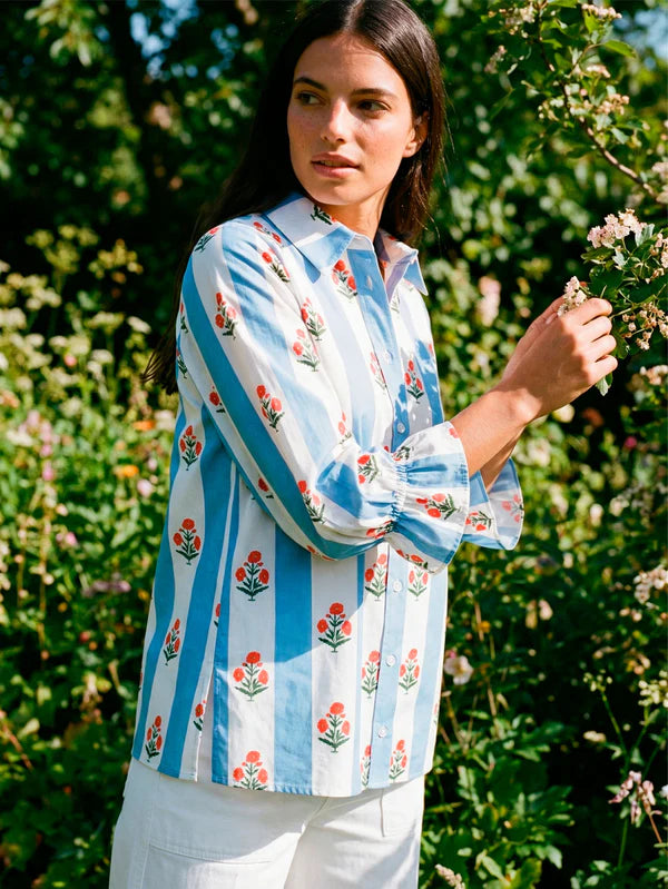 CAMISA DE RAYAS AZULES CON FLORES INDIAS