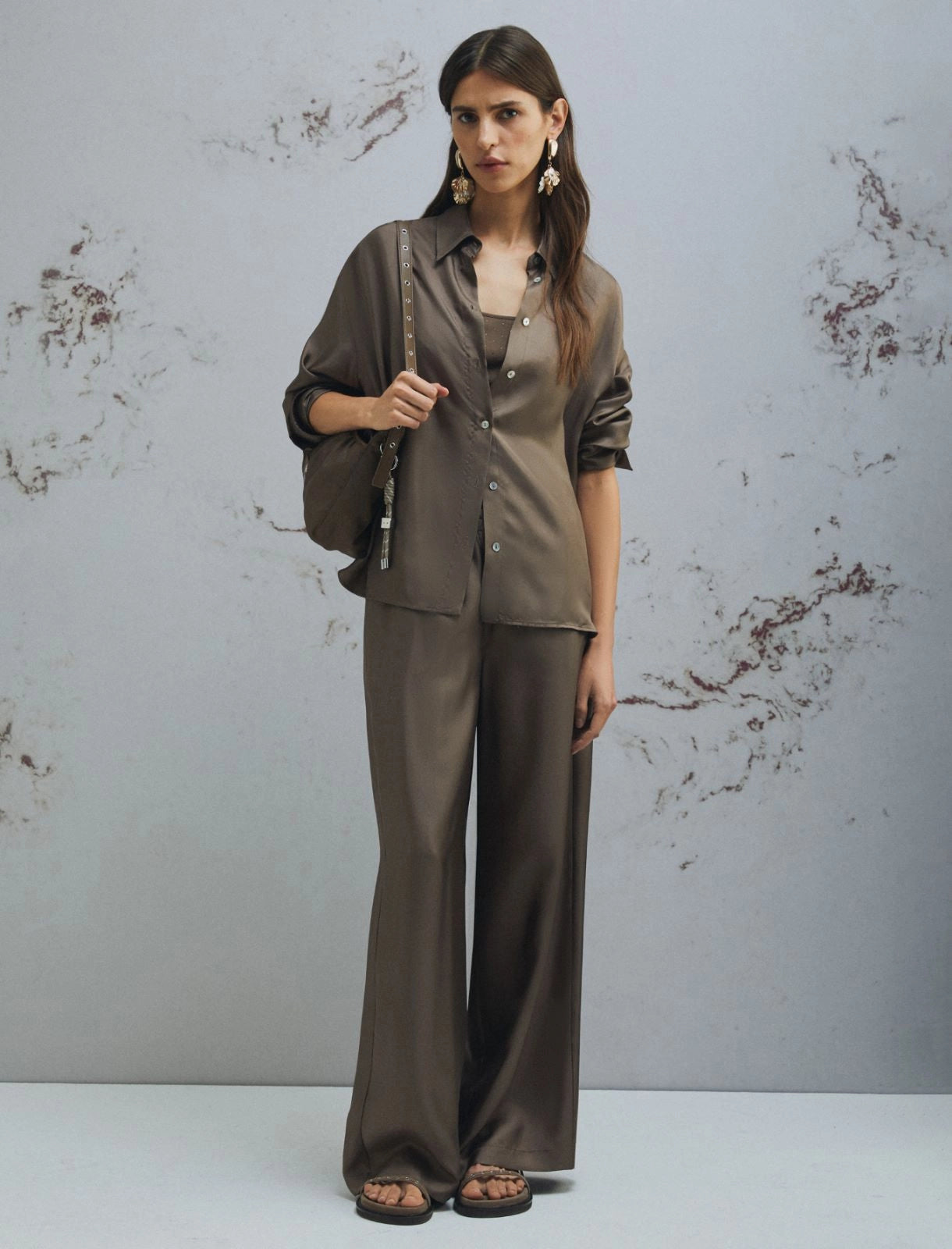 Camisa de seda - MARRON