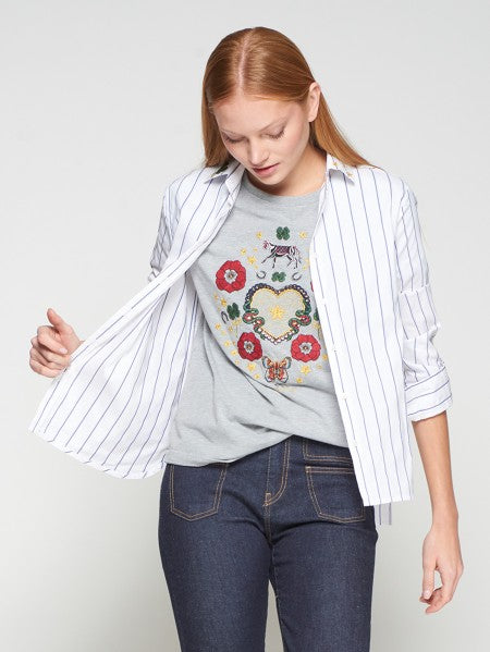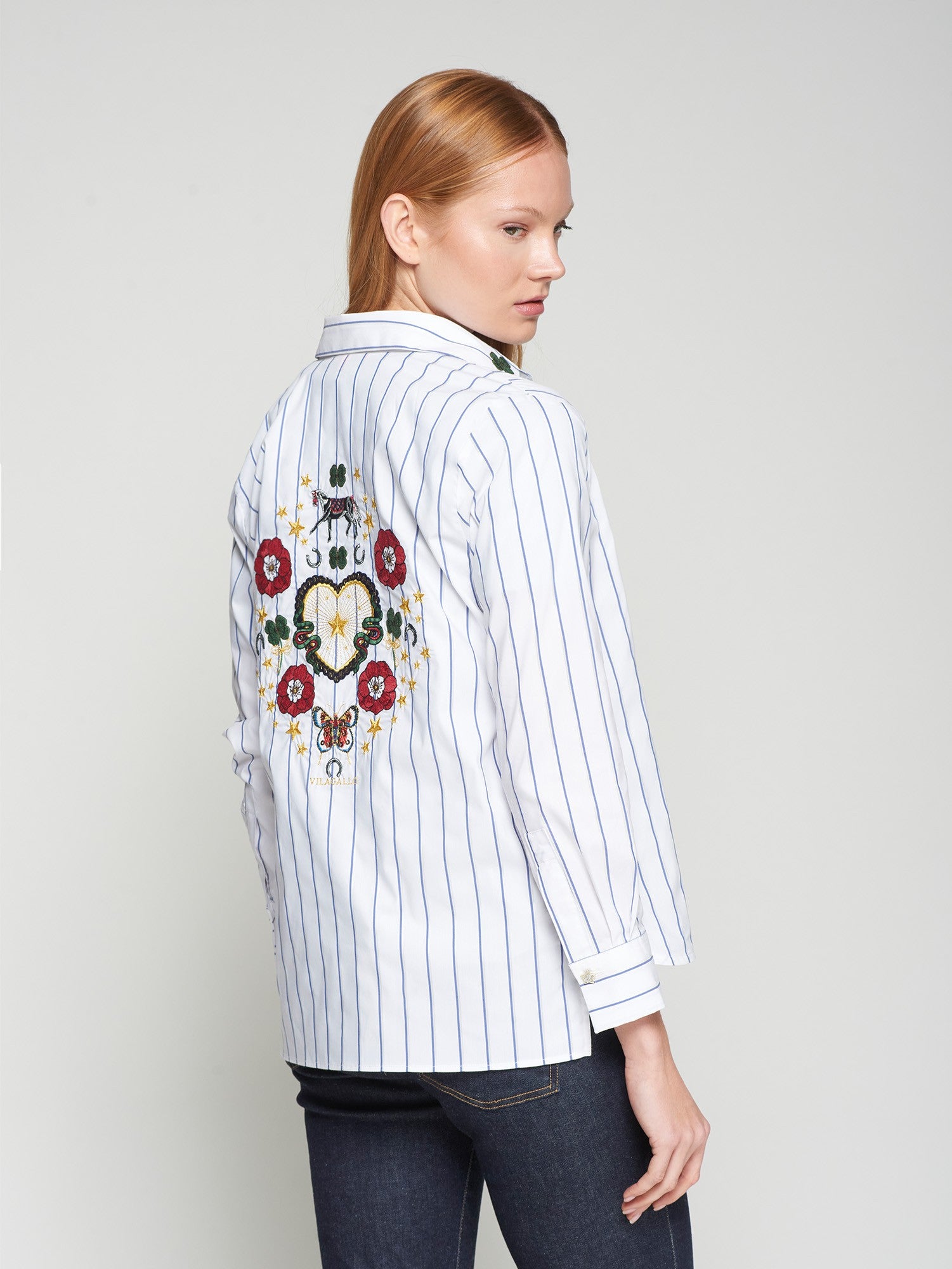 CAMISA RAYA AZUL CON BORDADO HIPICO