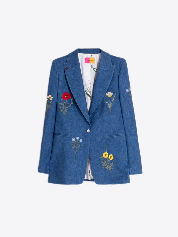 CHAQUETA AZUL FLORES BORDADAS