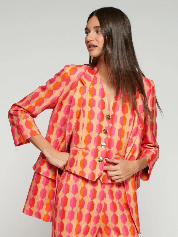 CHAQUETA ESTAMPADO GEOMÉTRICO ROSA Y NARANJA