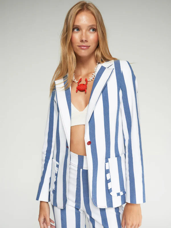 CHAQUETA RAYAS AZUL Y BLANCO BOLSILLOS VOLANTES