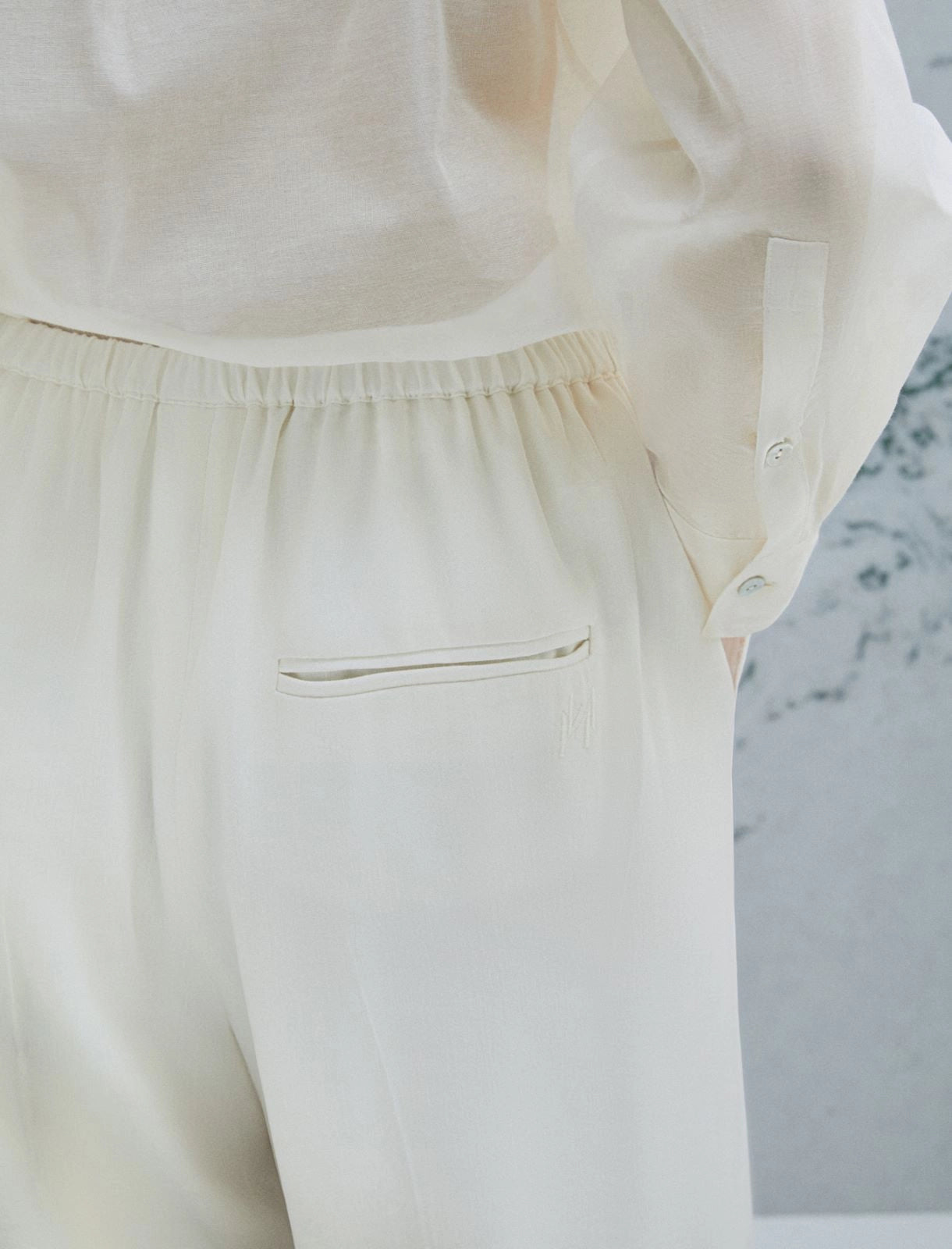 Pantalón de mezcla de lino con cordón ajustable - BLANCO LANA