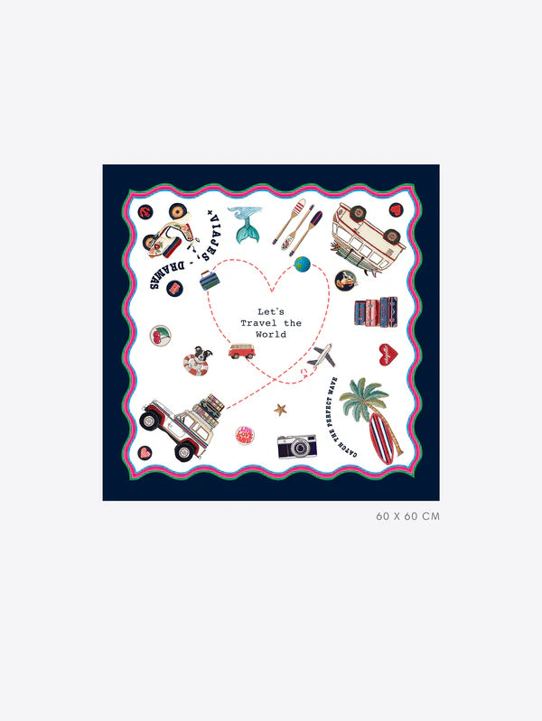 PAÑUELO MEDIANO SEDA LET’S TRAVEL THE WORLD