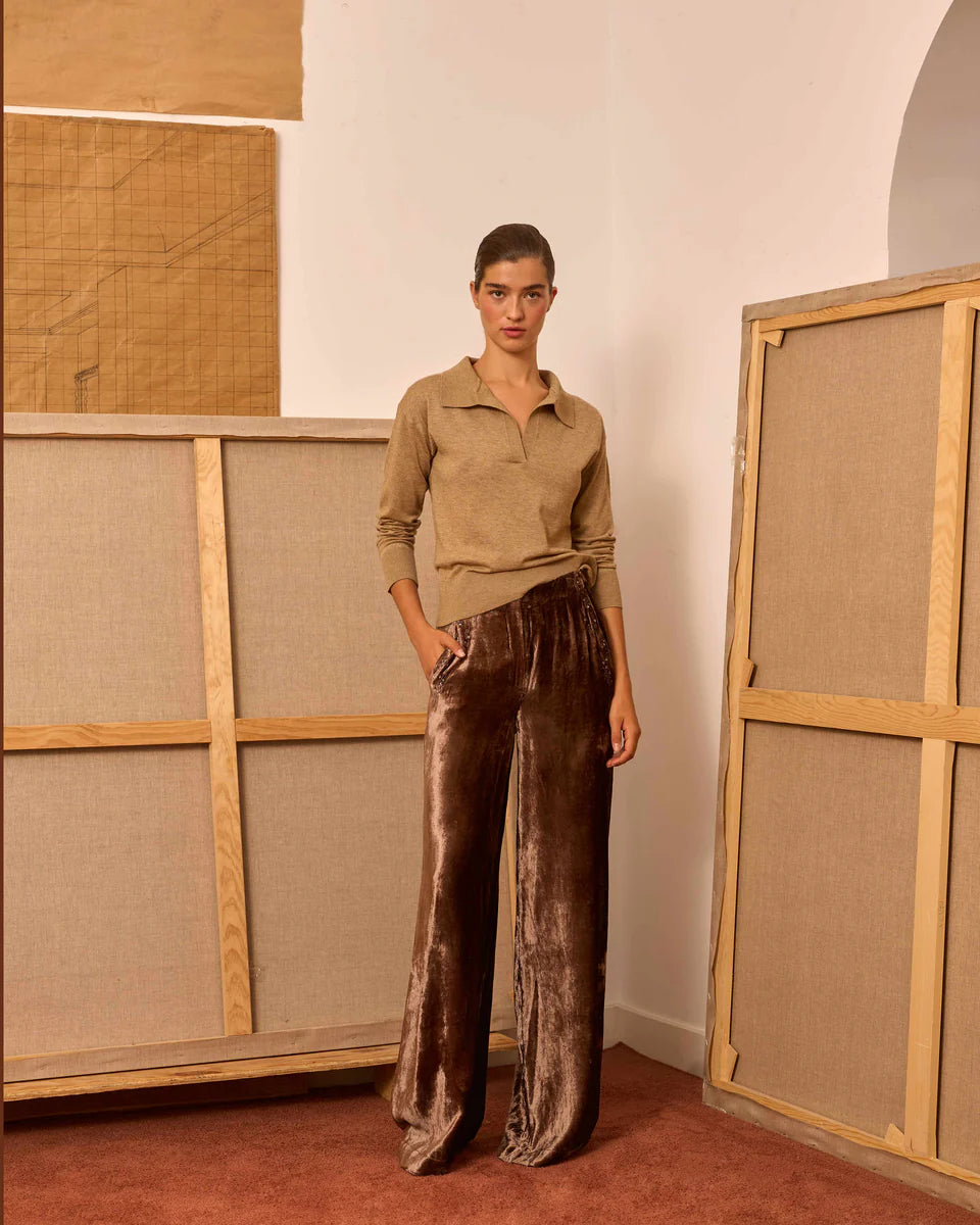 Polo de punto color topo
