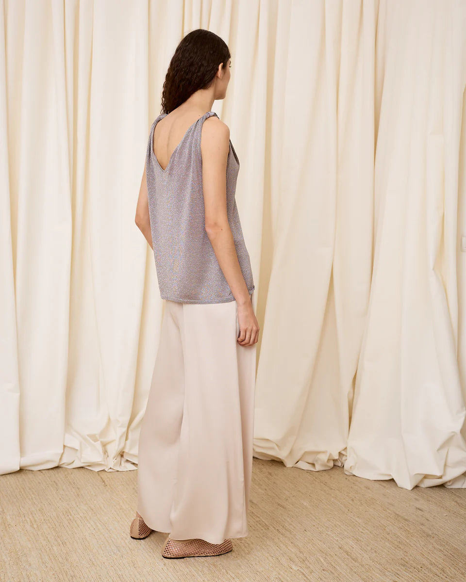 Top de lurex escote pico plata