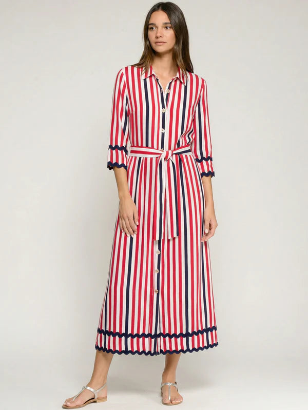 VESTIDO RAYAS ROJO MARINO ONDULINA